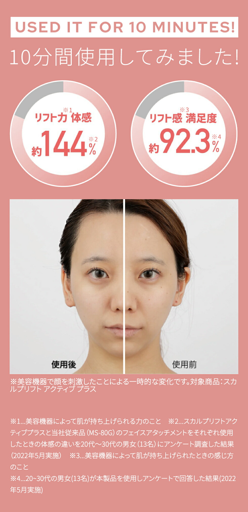 ※2…美容機器によって肌が持ち上げられる力のこと